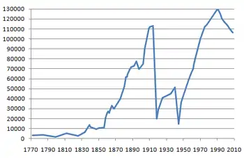 From 1784 onwards the city had a large and active Jewish population[12] among them a number of prominent figures. According to the Russian census of 1897, out of a total population of 69,700, Jews numbered 32,400 (ca. 44% percent).[13]