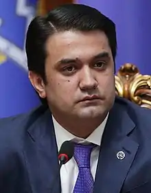 In 2000, Dushanbe received internet access for the first time.[64] In 2004, the UNESCO declared Dushanbe as a city of peace.[86] Mahmadsaid Ubaidulloev was declared mayor of Dushanbe in 1996, after during the civil war era many said he was in real control of the government.[87] He was the mayor of the capital for the longest term of any mayor, 21 years, until 2017.[71] From independence, the city's economy has grown consistently up until the COVID-19 recession.[88][89] In January 2017, Rustam Emomali, current President Emomali Rahmon's son, was appointed Mayor of Dushanbe, a move which is seen by some analysts as a step to reaching the top of the government.[90]