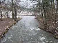 ![]() Red water (eau rouge in French) on the banks of the river | |