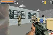 Ecks vs. Sever is a first-person shooter video game for the Game Boy Advance handheld game console. It was developed by Crawfish Interactive and released in November 2001. The game is based on an early script of the 2002 film Ballistic: Ecks vs. Sever, and is the first video game released before the film it is based on had even begun production.[3] The sequel Ballistic: Ecks vs. Sever was released within a week of the film and follows its plot line more closely than the first game does.