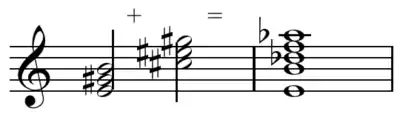 The Elektra chord is a "complexly dissonant signature-chord"[1] and motivic elaboration used by composer Richard Strauss to represent the title character of his opera Elektra that is a "bitonal synthesis of E major and C-sharp major" and may be regarded as a polychord related to conventional chords with added thirds,[2] in this case an eleventh chord. It is enharmonically equivalent to a 7#9 chord : D♭-F-A♭-C♭-E and a 6b9 chord : E-G#-B-C#-F.
