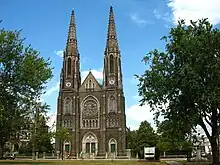 Elizabeth Marina, which was once filled with trash and debris along its walkway, was also restored. It is the site of year-round celebrations from a Hispanic festival in late spring to the lighting of a Christmas tree in winter. Living conditions in this area continue to improve year after year. Historically, there were immigrant communities centered around Christian churches. The Slavic community was centered by Sts. Peter and Paul Byzantine, the Lithuanian community attended Sts. Peter and Paul Roman Catholic and the Polish community attended St. Adalbert Roman Catholic Church which still stands. St. Patrick Church, originally Irish, dominates the 'Port; the cornerstone for the second and current building was laid in 1887.[48]
