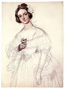 Emma Romer, born in 1813, was the daughter of John Romer and his wife, Elizabeth Cooper. The Romers were a theatrical family - "uncles! aunts! cousins! brothers! sisters! - all have "smelt the lamp"', as a contemporary publication puts it.[1] She was a pupil of James Elliot, and later of Sir George Smart (according to the Dictionary of National Biography. Another source indicates she was first taught by a Mr. Watson, and then for a short period by Smart, and afterwards - Smart's fees being more than the family could afford - by Elliot).[1] Her first theatrical appearance was announced at Covent Garden Theatre for 16 October 1830, when, as Clara in The Duenna, she exhibited a soprano voice of great volume and compass, together with considerable dramatic talent. But the faultiness of her voice-production, and failure in the technique of her art, checked her immediate progress.[2] The suggestion is that her talent - at least in her early years - was limited by the quality of her teachers.[1]