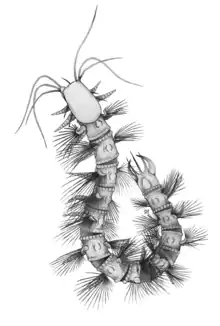 Enalikter ("scourger of the sea") is an extinct arthropod described from the middle Silurian Herefordshire Lagerstätte at the England–Wales border in UK.[1] This genus is known from only one species, E. aphson. Enalikter is described as late-living example of Megacheira, "great-appendage arthropod". It subsequently suggested to be an annelid by other researchers,[2] however subsequent studies rejected this interpretation.[3][4] Its interpretation as megacheiran arthropod has been questioned in later studies.[5][6]