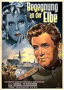 Encounter at the Elbe (in Russian: Встреча на Эльбе, romanized: Vstrecha na Elbe) is a Soviet war film released in 1949 from Mosfilm, describing the conflict, spying, and collaboration between the Soviet Army advancing from the east and the U.S. Army advancing from the west. The two allied forces met each other for the first time on the River Elbe near the end of the World War II. This meeting occurred on April 25, 1945, which was usually remembered as “Elbe Day” in Western Bloc nations and as the "Encounter at the Elbe” in Eastern Bloc nations.[1]