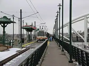 Englewood station is a RTD light rail station in Englewood, Colorado, United States. Operating as part of the D Line, the station was opened on July 14, 2000, and is operated by the Regional Transportation District.[5][6] It serves the Englewood City Center, site of the former Cinderella City Mall.[7]