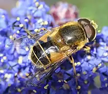 Eristalis stipator, the yellow-shouldered drone fly, is a species of hoverfly native to North America.[1][2][3][4] It is abundant in western North America, with a few scattered records in the east.[4] It flies from mid-May (or as early as February in the south of its range) to early November, and is known to hilltop.[4]