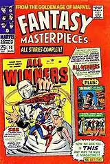 The first ongoing series of this name began as Fantasy Masterpieces, initially a standard-sized, 12¢ anthology reprinting "pre-superhero Marvel" monster and sci-fi/fantasy stories. With issue #3 (June 1966), the title was expanded to a 25-cent giant reprinting a mix of those stories and Golden Age superhero stories from Marvel's 1940s iteration as Timely Comics. Fantasy Masterpieces ran 11 issues (Feb. 1966–Oct. 1967) before being renamed Marvel Super-Heroes with #12 (Dec. 1967).[3]