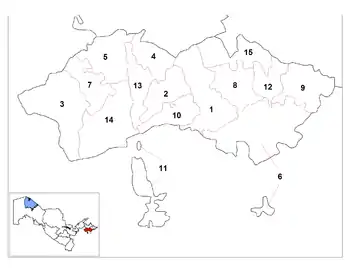 The Fergana Region consists of 15 districts (listed below) and four district-level cities: Fergana, Kokand, Quvasoy and Margilan.[2][1]