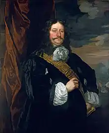 The paintings were commissioned from Lely by James, Duke of York, brother of King Charles II, in late 1665.[1] James had commanded the English fleet against the Dutch at the Battle of Lowestoft on 13 June 1665, and the portraits were intended to commemorate those who had served under him as junior flag officers and captains of some of the ships.[2] Lely, Principal Painter to King Charles II, was working on the series known as the 'Windsor Beauties' at the time for James's wife, Anne Hyde, Duchess of York.[3] The full set consists of thirteen portraits of admirals and senior officers, or 'Flaggmen' as they were known at the time.[2]