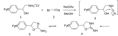 2-amino-1-[4-(trifluoromethyl)phenyl]ethanol [776-02-3] (1) cyanogen bromide [506-68-3] (2)