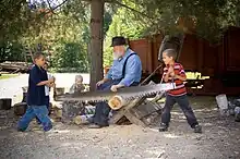 The Logging Camp is a re-creation of a typical logging camp of 1900. Buildings include a bunkhouse, cook house, blacksmith shop, horse barn, and outhouse. Costumed interpreters reenact logging camp processes as well as interact with visitors and tell stories. Visitors may choose to follow a tour, or use a self-guided brochure.[2] [3]