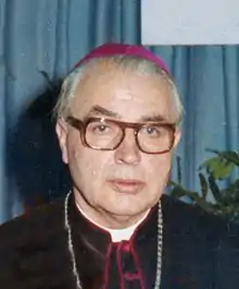 Various bishops supported the Medjugorje apparitions, of whom Franić, a senior Croatian cleric, was one of the most prominent.[27][28] Out of forty-two Yugoslav bishops, he was the one supporting the apparitions.[29][30] Franic supported the Franciscans and seers of Medjugorje, in fact issued a public statement in their support. Randall Sullivan wrote that in regards to conversions, Franic said, "Medjugorje has accomplished more in two years than all our pastoral action has done in forty."[31] Franić is regarded as one of the most important apologist for the Medjugorje apparitions,[32] along with French mariologist René Laurentin. The two were known for supporting supernatural phenomenons banned by the Holy See, including Vassula Rydén, a self-proclaimed mystic, and seer.[30]
