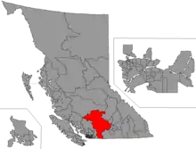 As of the 2020 provincial election, Fraser-Nicola comprises the southwestern portion of the Thompson-Nicola Regional District, eastern portion of the Squamish-Lillooet Regional District and the eastern portion of the Fraser Valley Regional District. It is located in southern British Columbia. Communities in the electoral district consist of Merritt, Hope, Lillooet, Logan Lake, Lytton, Ashcroft, and Cache Creek.[1]