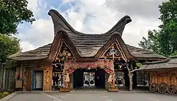 A new themed area, the Plohni Village, was opened at the start of the season on April 21, 2011. As a new attraction there is the family roller coaster Plohseidon from Zierer,[3] a nostalgia-carousel, which was previously in Heide Park and Plohni's Diving Excursion since Whitsun 2012.[4][5] Since 2013 there has been a completely new theme area: The village of the Gauls (German: Dorf der Gallier). The main attraction is the raft water slide called Curse of Teutates (German: Fluch des Teutates), manufactured by ABC Rides.[6][7] The tavern house has been back on the complex since 2014, and work is being carried out on sanitary and catering facilities in the style of a Gaul village. In 2015, the new indoor roller coaster Miniwah & The Secret of Gold Creek City, manufactured by Mack Rides with a multimedia show opened in the former arena. In 2016 the park opened a new main entrance in the style of the Village of the Gauls. The construction of a bungalow resort with up to 600 beds is planned for the future. Furthermore, the vaulted cellar in the Old Brewery is to be expanded.[8]