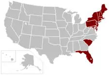 Friendly's is a restaurant chain on the East Coast of the United States. The first location, selling ice cream cones, was in Springfield, Massachusetts, opened in 1935. It was founded by brothers S. Prestley Blake and Curtis Blake. It has 10,000 employees. George Michel is the CEO.[6] It offers diner-style cuisine and highlights its 22 ice cream flavors. Many locations offer an ice-cream only take-out window alongside of the table service option. Friendly's restaurants are found in Massachusetts, Delaware, Maryland, New Jersey and Pennsylvania.[7] Its ice cream is also sold in some East Coast supermarkets.