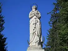 The Fucine Inlet (Italian: Incile del Fucino) is a monument built on the head of the main emissary of the Fucine Lake in Italy. It is made up of the three-arched bridge of the sluice gates and the about 7-metre-high (23 ft) statue of the Immaculate Conception rising above. It is situated in Borgo Incile, a locality south of the city of Avezzano, in the Fucine plain, Abruzzo, Central Italy. The facility, necessary for the drainage of the Fucine Lake, connects the outer drainage canal to the underground emissary which is served by the system of the Tunnels of Claudius in Mount Salviano. The monument was made in 1876 by architect Carlo Nicola Carnevali.