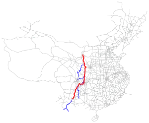 The Yinchuan–Kunming Expressway (Chinese: 银川-昆明高速公路), designated as G85 and commonly referred to as the Yinkun Expressway (Chinese: 银昆高速公路) is an expressway in China that connects the cities of Yinchuan, Ningxia and Kunming, Yunnan. It is 838 km (521 mi) in length.