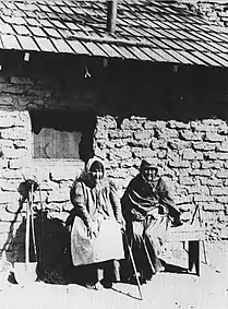 Two Tongva women at the San Fernando mission, circa 1890.