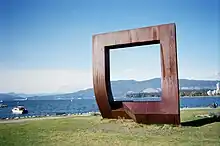 Gate to the Northwest Passage is a 1980 sculpture by Alan Chung Hung, located adjacent to the Vancouver Maritime Museum in Vanier Park in the Kitsilano neighborhood of Vancouver, British Columbia, Canada.[1] The 4.6-metre (15 ft) sculpture of a square, cut and twisted "like a paper clip" to form an arch, is composed of weathered Corten steel that rusts to provide a protective layer. The work was installed in 1980 to commemorate the arrival of Captain George Vancouver in Burrard Inlet, following a competition sponsored by Parks Canada one year prior. Gate to the Northwest Passage received an adverse reaction initially, but reception has improved over time. The sculpture has been included in walking tours of the surrounding neighborhoods as a highlight of Vanier Park.