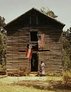 The Georgia Code of 1861 required that militia regiments and battalions detailed for service outside of Georgia be provided with regimental colors "bearing the arms of the State". Regimental colors were to be inscribed with name of the unit.[7] The color of the flag itself was not specified.[8] A surviving state flag in the collection of the American Civil War Museum in Richmond, however, places the arms on a red field.[9]