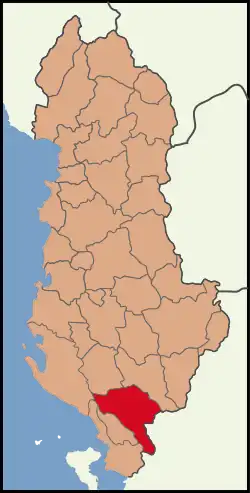 Gjirokastër District (Albanian: Rrethi i Gjirokastrës) was one of the 36 districts of Albania, which were dissolved in July 2000 and replaced by 12 counties. It had a population of 55,991 in 2001, and an area of 1,137 km2 (439 sq mi).[1] It contained a large Greek ethnic minority.[2][3] It is in the south of the country, and its capital was the city of Gjirokastër. Its territory is now part of Gjirokastër County: the municipalities of Gjirokastër, Dropull and Libohovë.