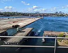 The Glebe Island Bridge is a heritage-listed disused swing Allan truss road bridge that carried Victoria Road (as Bank Street) across Rozelle Bay, located in the inner city Sydney suburb of Pyrmont in the City of Sydney local government area of New South Wales, Australia. The bridge, that connected Rozelle to Pyrmont by road, is one of the last remaining swing bridges of its type in Australia and in the world. It was designed by Percy Allan and built from 1899 to 1903 by Bridges Branch of NSW Public Works Department. It is also known as RMS Bridge No. 61. It was added to the New South Wales State Heritage Register on 29 November 2013[1] and was listed on the (now defunct) Register of the National Estate on 19 April 1989.[2]