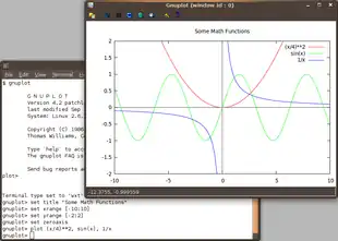 gnuplot is a command-line and GUI program that can generate two- and three-dimensional plots of functions, data, and data fits. The program runs on all major computers and operating systems (Linux, Unix, Microsoft Windows, macOS, FreeDOS, and many others).[3] Originally released in 1986, its listed authors are Thomas Williams, Colin Kelley, Russell Lang, Dave Kotz, John Campbell, Gershon Elber, Alexander Woo "and many others."[4] Despite its name, this software is not part of the GNU Project.