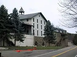 Gold Seal Winery is a historic winery complex located near Hammondsport in Steuben County, New York, United States. The primary building on the complex is in the Italianate style and constructed in 1865. It is a three-story, 54 feet by 110 feet, stone structure built into a hillside. It features a bell tower, gable roof with dormers, stuccoed upper stories, and barrel vaults. The original building was enlarged on at least six occasions. A long, narrow stone addition (20 feet by 120 feet) was built in 1890 and expanded in 1903-1903 with a mansard roof in the Second Empire style. Another major addition was built in 1884 and expanded in 1887. It included a champagne fluting room, an additional storage vault, and tasting porch. A 54 feet by 109 feet addition of reinforced concrete was built in 1912. Other contributing buildings are the Pornace House (1909) and brandy distillery (1865).[2]