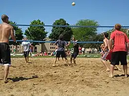 Intramural athletics are also offered. Throughout the year, students can participate in the coed sports of outdoor soccer, volleyball, sand volleyball, kickball, ping-pong, pickleball, touch football, ultimate frisbee, and wiffleball, as well as basketball, indoor soccer, and 3-on-3 basketball.[23]