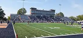 The stadium's capacity is 7,500 with nearly 1,900 chairback seats. About 1,200 are located on the east side. There are 400 chairbacks on the west side. Berms located beyond the south end zone give the stadium a "bowled" look.