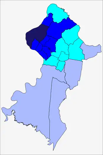 | N° | City | Department | Area | Population | ![]() Asunción (dark blue) and the metropolitan rings in Central Department. |