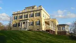 Grasse Mount has been recognized as the best example of a Georgian colonial house within the State of Vermont,[27][28][29] and was included in the book "Great Georgian Houses of America", originally published by the Architects' Emergency Committee in 1933. Here the mansion was represented in an illustration with a hipped roof in place of its belvedere structure.[30]