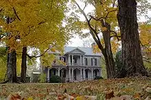 Nashville Zoo is located on property that was once a 300-acre slave holding farm owned by Michael and Elizabeth Dunn.[7] The Dunn's original home, built in 1810 through slave labor, is still located on the property. Margaret and Elise Croft, the great-great granddaughters of Michael Dunn, the original owner, were the last of the family to live at this location.[8][9] In 1989, archaeologists evaluating the property for its archaeological resources discovered an unmarked cemetery fairly close to Grassmere's entrance off of Nolensville Road.[10] When construction for the zoo began in 1997, this graveyard was not disturbed. It was only in 2013 when a newer entry plaza was planned did the zoo petition to have the bodies exhumed and their remains moved closer to the historic Dunn house by the state archaeologist. This exhumation revealed 9 to 30 African-Americans who had been buried there.[11][12]