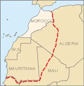In 1963, following the Independence of Algeria, Morocco attacked a strip of its south-western regions (Tindouf Province and Béchar Province), claiming that parts of them were previously under Moroccan sovereignty. There were several hundred casualties. French sources reported Algerian casualties to be 60 dead and 250 wounded,[1] with later works giving a number of 300 Algerian dead.[2] Morocco officially reported to have suffered 39 dead.[3] Moroccan losses were probably lower than the Algerians' but are unconfirmed,[1] with later sources reporting 200 Moroccan dead.[4] About 57 Moroccans and 379 Algerians were taken prisoner.[3] After a month of fighting and some hundreds of casualties, the conflict stalemated (see Sand War).