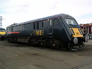 One early, and particularly low cost, means of expanding GNER's fleet was the purchase of the Class 89 prototype electric locomotive 89001. After being repaired at a reported cost of £100,000 and repainted in GNER livery, it went into revenue-earning service in March 1997, being primarily used on services from London King's Cross to Leeds and Bradford Forster Square.[21][22] 89001 had to be withdrawn from service in October 2000 due to technical problems, but its brief service life had helped alleviate GNER's shortage of traction due to reliability issues.[2]