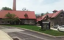 Spruance Hall was used as a maintenance building for the Harrison estate. It was known as the engineer's building, and there were many tunnels leading from this building to other places on the estate. Its most notable feature is a large smokestack. After Beaver College purchased the estate, the building was used for fashion and art classes. The building currently houses Arcadia University's theater, as well as an art studio and painting classroom.