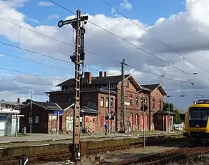 Grimmen station is a railway station in the municipality of Grimmen, located in the Vorpommern-Rügen district in Mecklenburg-Vorpommern, Germany.