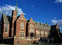 The Grosse Pointe Academy is situated on a long strip of land between Grosse Pointe Boulevard and Lake Shore Drive on Lake Saint Clair, and directly adjacent to Saint Paul Catholic Church (Grosse Pointe Farms, Michigan).[2] Seven buildings are situated on the site, of which five are contributing structures to the historic district: an 1855 farmhouse, four large educational buildings dating from 1885 to 1930. The last two structures, a 1939 headmaster's house and a maintenance shed, are non-contributing.