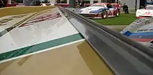 The original application, pioneered by American automobile racing icon Dan Gurney (who was challenged to do so by fellow American racer Bobby Unser), was a right-angle piece of sheet metal, rigidly fixed to the top trailing edge of the rear wing on his open-wheel racing cars of the early 1970s. The device was installed pointing upward to increase downforce generated by the wing, improving traction.[4] He field-tested it and found that it allowed a car to negotiate turns at higher speed, while also achieving higher speed in the straight sections of the track.[8]