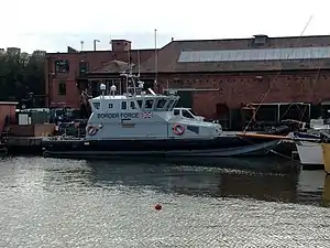 HMC Nimrod is a Border Force coastal patrol vessel of the United Kingdom, formerly Euan, an Autonomous Rescue and Recovery Craft operated by BP.[5] She was originally built by Delta Power Group, Stockport and was operated by BP as a rescue boat aboard larger offshore support vessels. Euan was acquired by the UK Border Force in July 2016 and renamed HMC Nimrod.[4]