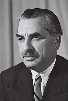 Haim-Moshe Shapira (Hebrew: חיים משה שפירא, 26 March 1902 – 16 July 1970) was a key Israeli politician in the early days of the state's existence. A signatory of Israel's declaration of independence, he served continuously as a minister from the country's foundation in 1948 until his death in 1970 apart from a brief spell in the late 1950s.