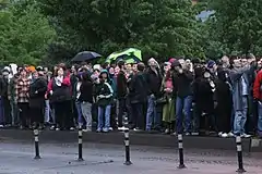 Following Forkner's speech, Basic Rights Oregon executive director Jeana Frazzini thanked the couple, spoke of the symbolism of the hand-holding rally, and encouraged supporters to volunteer for the Q Patrol.[27] During the rally, the crowd sang the Beatles' "I Want to Hold Your Hand".[19][28]