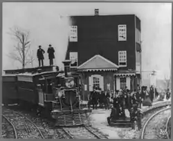 After the Battle of Gettysburg in 1863, the Hanover Branch provided a route for transportation of wounded soldiers to distant hospitals and cities via Hanover Junction, since this was the only rail outlet available from Gettysburg to the outside world during the Civil War area.[4] The Hanover Branch Railroad facilities at Hanover Junction included a hotel built by the railroad, which also housed the railroad's offices.[4] During the Gettysburg Campaign of the Civil War, Confederate cavalry disrupted the telegraph line and destroyed the railroad's facilities at Hanover Junction, except for the hotel.