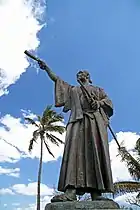 There are statues of Hasekura Tsunenaga in the outskirts of Acapulco in Mexico, at the entrance of Havana Bay in Cuba,[40] in Coria del Río in Spain,[41] in the Church of Civitavecchia in Italy, in Tsukinoura, near Ishinomaki,[42] and two in Osato town in Miyagi.[43] Approximately 700 inhabitants of Coria del Río bear the surname Japón (originally Hasekura de Japón), identifying them as descendants of the members of Hasekura Tsunenaga's delegation.[44] A theme park describing the embassy and displaying a replica of the San Juan Bautista was established in the harbour of Ishinomaki, from which Hasekura initially departed on his voyage.[45]