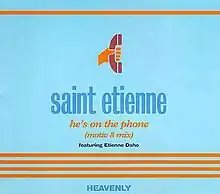"He's on the Phone" is a song by British pop group Saint Etienne in collaboration with French singer-songwriter Étienne Daho, released in October 1995. A fast-paced dance track, it is one of Saint Etienne's biggest hits, reaching number 11 on the UK Singles Chart, number 31 in Iceland, number 41 in Sweden and number 33 on the US Billboard Dance Club Songs chart. The lyrics tell of an "academia girl" trying to escape from a relationship with a married man: "He's on the phone / And she wants to go home, / Shoes in hand, / Don't make a sound, / It's time to go." At the centre of the track is a spoken-word section by Daho.