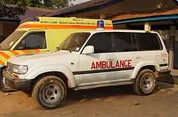Healthcare in Sierra Leone is generally charged for[1] and is provided by a mixture of government, private and non-governmental organizations (NGOs). There are over 100 NGOs operating in the health care sector in Sierra Leone. The Ministry of Health and Sanitation is responsible for organizing health care and after the end of the civil war the ministry changed to a decentralized structure of health provision to try to increase its coverage.[2]