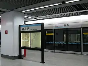 Hechuan Road (Chinese: 合川路; pinyin: Héchuān Lù) is an underground station on Shanghai Metro Line 9. It began operation on December 29, 2007. It is located at the corner of Yishan Road and Hechuan Road.