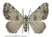 The length of the forewings is 9.5-13.1 mm. The forewings are triangular with a brownish white to grey coloration and brown to dark brown wavy transverse lines.[1]