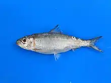 Herklotsichthys quadrimaculatus, also known as the bluestripe herring, is a species of ray-finned fish in the family Dorosomatidae.[2] It is widespread in the Indian Ocean and the western Pacific Ocean.[1][2] Other names for the species include goldspot sardine and fourspot herring.[3] It can grow to a maximum standard length 25 cm (9.8 in), although its typical length is less than half of that.[2]